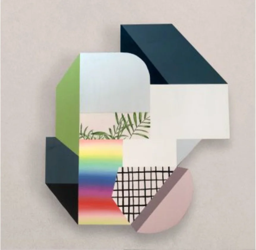 Drawn by the "unlimited access of exploration," James creates futuristic, dimensional worlds that are an extension of collaged compositions on shaped panels. For his exhibition in The Gallery, James collaborated with Boston-based company Hoverlay to create an interactive, augmented reality experience for the viewer.